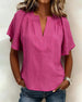 SPECIFICATIONS Top Type: Blouses Style: Casual Material: Cotton Blends Occasion: Daily Neckline: V neck_V Pattern Type: Solid Color Sleeve Type: Raglan sleeve Sleeve Length: Short Sleeve Fit Type: Regular Season: Spring,Summer Package Includes: 1 x Blouse SIZE TABLE Size Bust Length CM INCH CM INCH S 97 38.19 65 25.59 M 101 39...