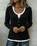 Color-Blocked Button Long-Sleeved Top