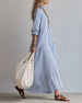 SPECIFICATIONS Style: Casual Material: Cotton Blends Dress Type: Shift dress Dress Length: Maxi Neckline: V neck_V Pattern Type: Striped Sleeve Type: Regular sleeve Sleeve Length: Long Sleeve Fit Type: Regular Season: Spring,Fall Occasion: Daily Package Includes: 1 x Dress SIZE TABLE Size Bust Length CM INCH CM INCH S 97 38.19 130 51....