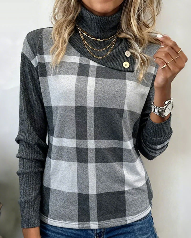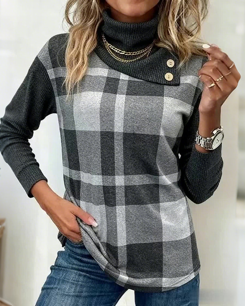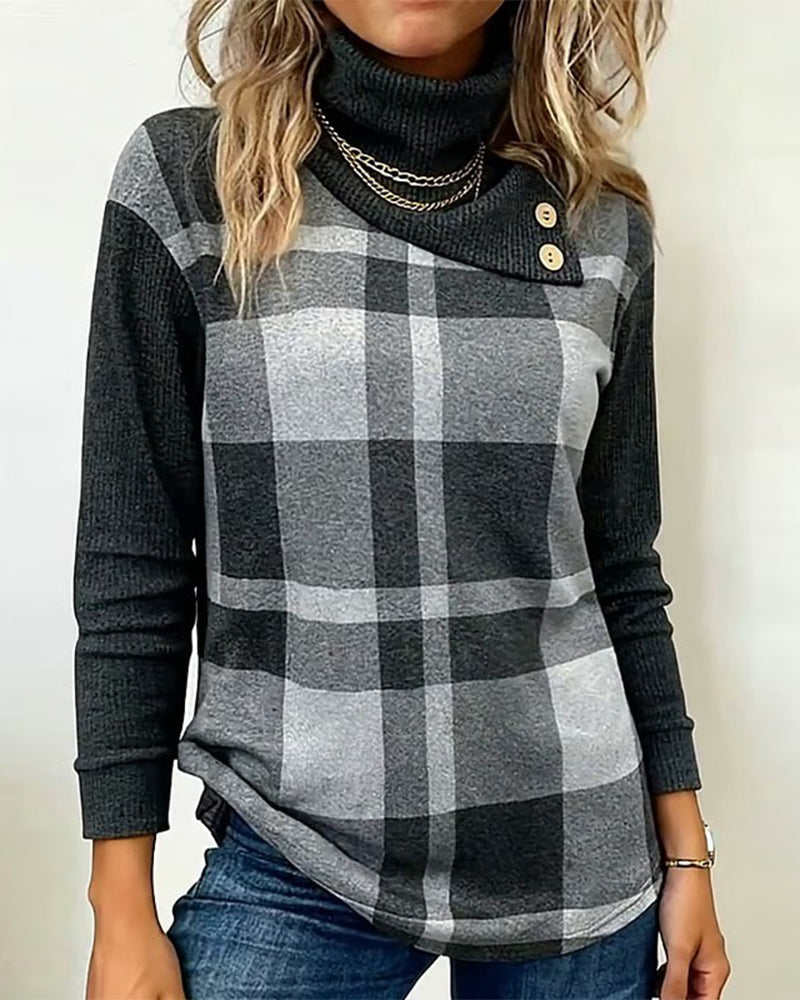 Patchwork Plaid Print Sweatshirt
