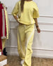 SPECIFICATIONS Style: Casual Top Type: T-shirt Material: Cotton Blends Pattern Type: Striped Neckline: Round Neck Sleeve Type: Dropped shoulder Sleeve Length: Half Sleeve Pants Type: Wide Leg Pants Length: Long Waist Type: Mid Waist Fit Type: Regular Season: Spring,Summer Details: Drawstring Occasion: Daily Package Includes: 1 x Set SIZE TABLE...