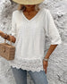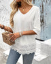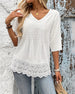 Jacquard Lace Patchwork V-Neck Blouse
