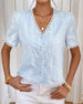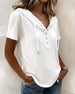 SPECIFICATIONS Top Type: Blouses Style: Casual Material: Cotton Blends Occasion: Daily Neckline: V neck_V Pattern Type: Solid Color Sleeve Type: Regular sleeve Sleeve Length: Short Sleeve Fit Type: Regular Season: Spring,Summer Details: Buckle Package Includes: 1 x Blouse SIZE TABLE Size Bust Length CM INCH CM INCH S 97 38.19 65...