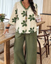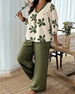 Floral Print V-Neck Top Wide-Leg Pants Set
