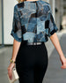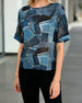 Denim-Like Patchwork Print Crewneck Loose Fit Top