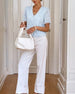 French V-Neck Scalloped Edge Blouse