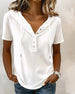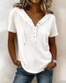 SPECIFICATIONS Top Type: T-shirt Style: Casual Material: Cotton Blends Occasion: Daily Neckline: Round Neck Pattern Type: Solid Color Sleeve Type: Regular sleeve Sleeve Length: Short Sleeve Fit Type: Regular Season: Spring,Summer Details: Buttons Package Includes: 1 x T-shirt SIZE TABLE Size Bust Length CM INCH CM INCH S 97 38.19...