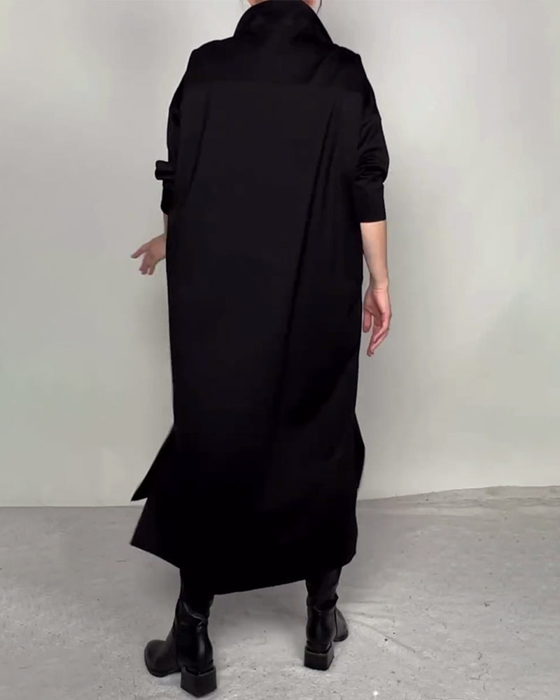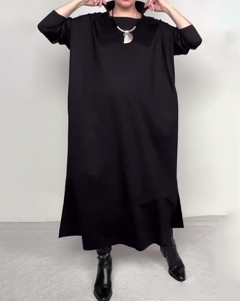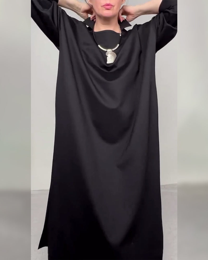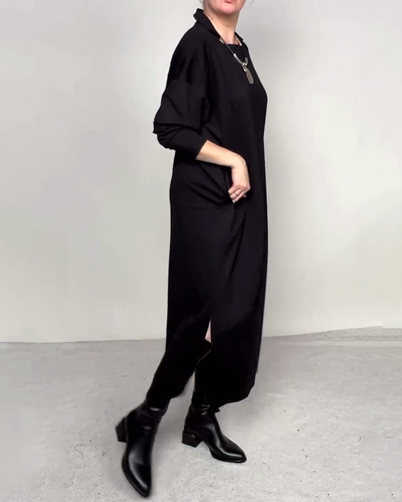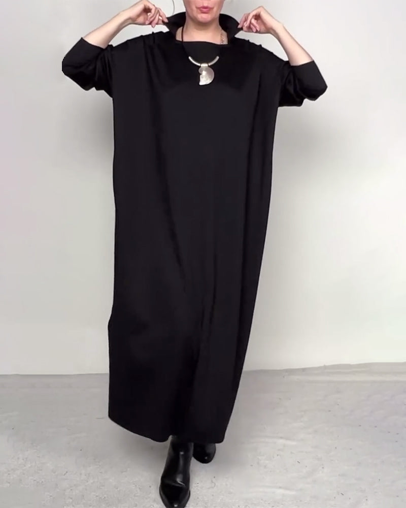 SPECIFICATIONS Style: Casual Material: Cotton Blends Dress Length: Maxi Neckline: High Neck Pattern Type: Solid Color Sleeve Type: Regular sleeve Sleeve Length: 3/4 Sleeve Details: Buttons,Slit Fit Type: Loose Season: Fall,Winter Occasion: Daily Package Includes: 1 x Dress SIZE TABLE Size Bust Length CM INCH CM INCH S 97 38.19 130 51....