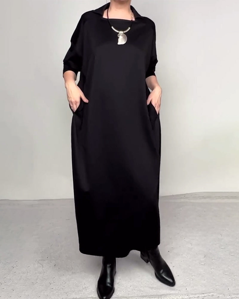 SPECIFICATIONS Style: Casual Material: Cotton Blends Dress Type: Shift dress Dress Length: Maxi Neckline: V neck_V Pattern Type: Solid Color Sleeve Type: Flare Sleeve Sleeve Length: Long Sleeve Details: Pocket Fit Type: Loose Season: Fall,Winter Occasion: Daily Package Includes: 1 x Dress SIZE TABLE Size Bust Length CM INCH CM INCH S ...