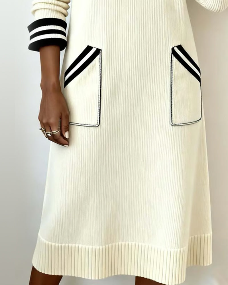 SPECIFICATIONS Style: Casual Material: Denim,Knit Dress Type: Shift dress Dress Length: Midi Neckline: V neck_V Pattern Type: Striped Sleeve Type: Raglan sleeve Sleeve Length: Long Sleeve Details: Patchwork,Pocket Fit Type: Regular Season: Fall,Winter Occasion: Daily Package Includes: 1 x Dress SIZE TABLE Size Bust Length CM INCH C...