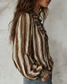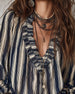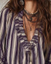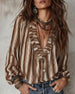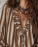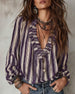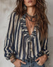 Deep V Vertical Striped Loose Blouse