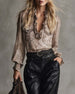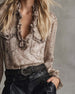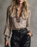 Ruffled V Neck Leopard Print Blouse