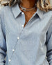 An Asymmetric Button-Down Striped Blouse