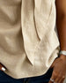 Linen-Blend V-Neck Short Sleeve Casual Blouse
