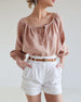 V-Neck Pleated Short-Sleeved Blouse