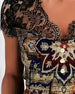 Lace-Trimmed V-Neck Retro Blouse