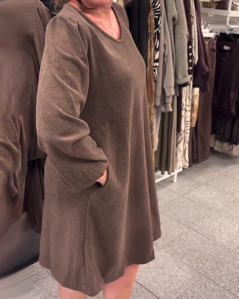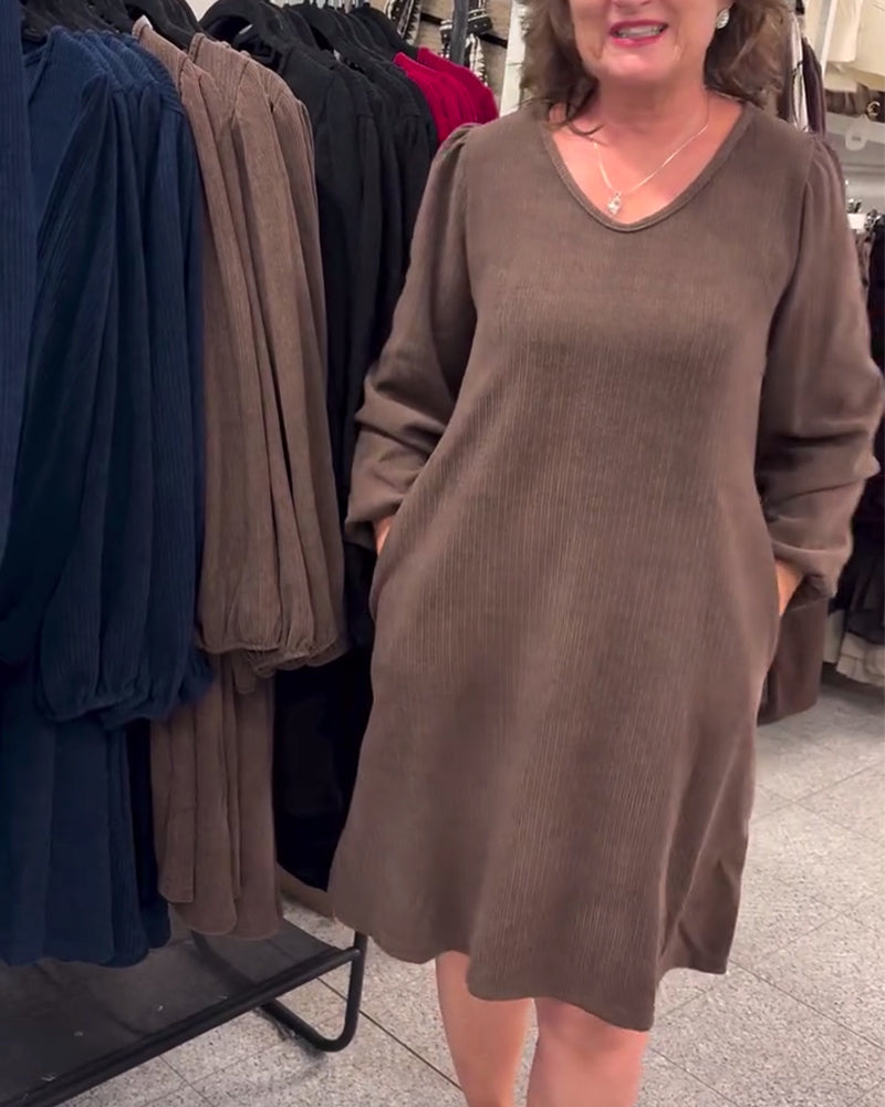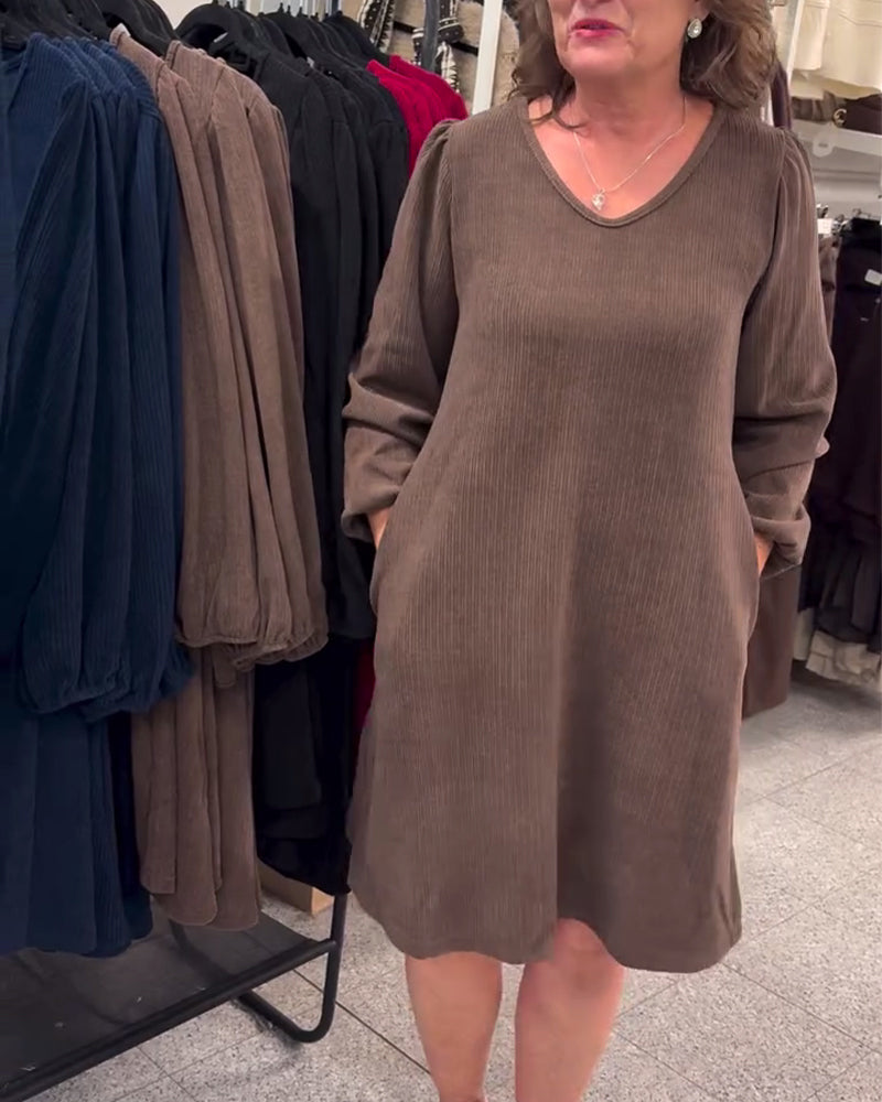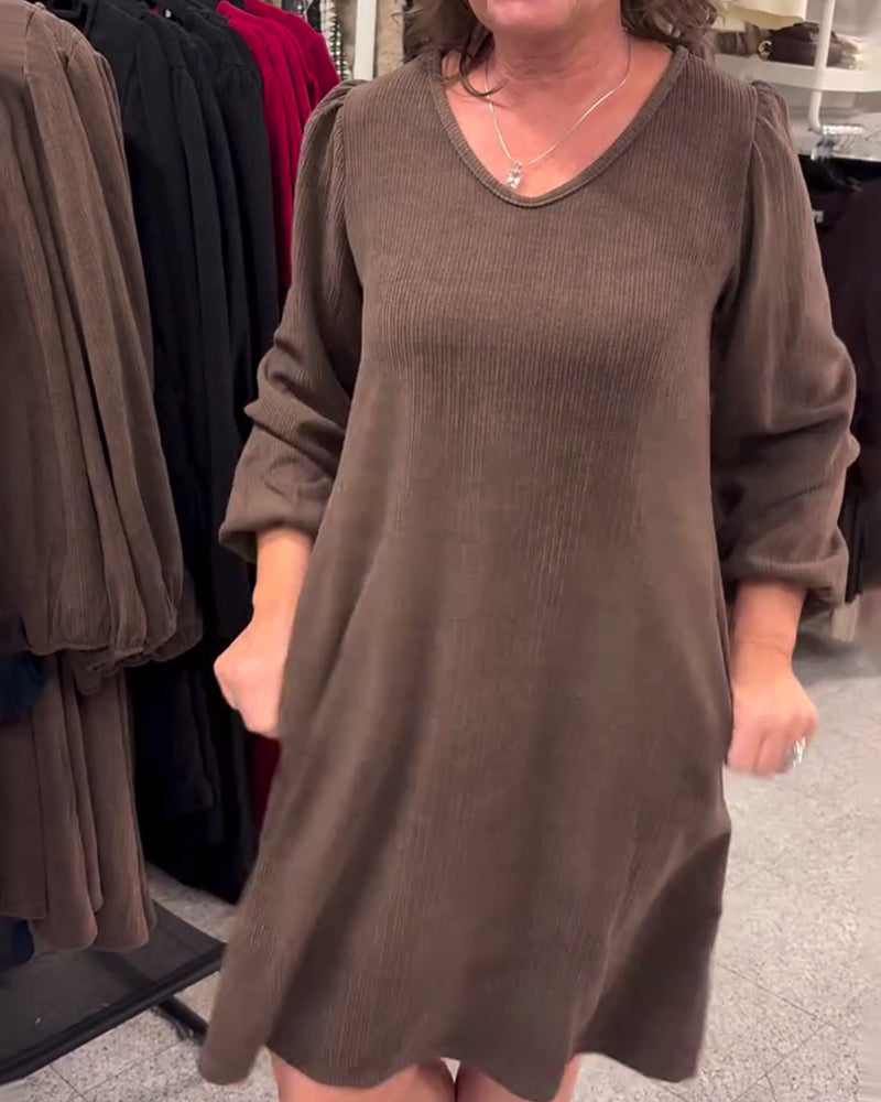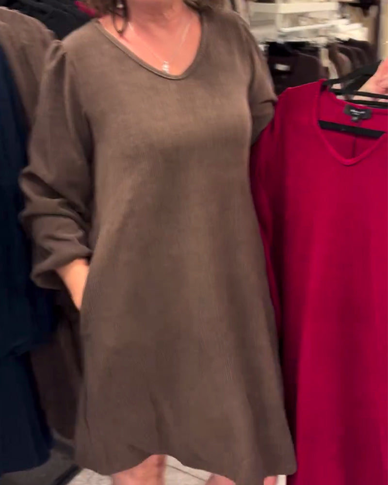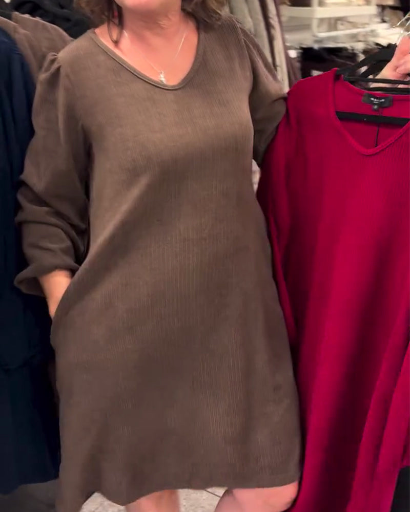 Long-Sleeved Loose-Fitting Ribbed Dress
