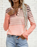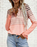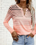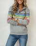 Polo Collar Long-Sleeved Striped Sweatshirt