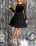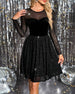 Sparkly Mesh Velvet Patchwork A-Line Dress