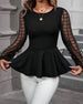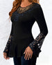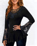 SPECIFICATIONS Top Type: Tops Style: Casual Material: Cotton Blends Occasion: Daily Neckline: Round Neck Pattern Type: Solid Color Sleeve Type: Flare Sleeve Sleeve Length: Long Sleeve Fit Type: Regular Season: Fall,Winter Details: Lace Package Includes: 1 x Top SIZE TABLE Size Bust Length CM INCH CM INCH S 92 36.22 65 25.59 M 96 37....