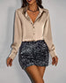 SPECIFICATIONS Style: Casual Material: Cotton Blends Dress Type: Shift dress Dress Length: Knee Length Neckline: Round Neck Pattern Type: Sequin,Solid Color Sleeve Type: Flare Sleeve Sleeve Length: Long Sleeve Fit Type: Loose Season: Fall,Winter Occasion: Daily Package Includes: 1 x Dress SIZE TABLE Size Bust Length CM INCH CM INCH...
