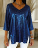 SPECIFICATIONS Top Type: Tops Style: Chic Material: Cotton Blends Occasion: Daily Neckline: V neck_V Pattern Type: Solid Color Sleeve Type: Regular sleeve Sleeve Length: 3/4 Sleeve Fit Type: Loose Season: Fall,Winter Package Includes: 1 x Top SIZE TABLE Size Bust Length CM INCH CM INCH S 104 40.94 68 26.77 M 108 42.52 69.5 27.3...
