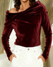 SPECIFICATIONS Top Type: Tops Style: Chic Material: Velvet Occasion: Daily Neckline: One Shoulder Pattern Type: Solid Color Sleeve Type: Regular sleeve Sleeve Length: Long Sleeve Fit Type: Regular Season: Fall,Winter Package Includes: 1 x Top SIZE TABLE Size Bust Length CM INCH CM INCH S 92 36.22 65 25.59 M 96 37.8 66.5 26.18 L 10...