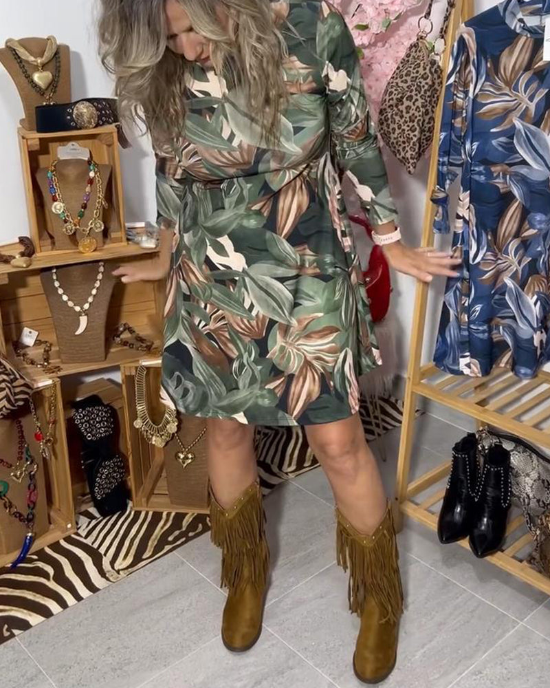 V-Neck Leopard Print Elegant Dress