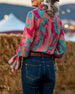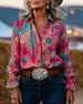 Button-Down V-Neck Denim Long-Sleeved Shirt