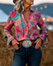Bohemian Style Flared Sleeve V-Neck Blouse