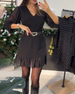 V-Neck Fine Glitter Mesh Patchwork Loose Dress
