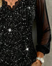 SPECIFICATIONS Style: Casual Material: Cotton Blends,Mesh Dress Type: Shift dress Dress Length: Knee Length Neckline: V neck_V Pattern Type: Sequin,Solid Color Sleeve Type: Regular sleeve Sleeve Length: Long Sleeve Details: Patchwork Fit Type: Regular Season: Fall,Winter Occasion: Daily Package Includes: 1 x Dress SIZE TABLE Size Bus...