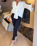 SPECIFICATIONS Top Type: Blouses Style: Casual Material: Cotton Blends,Mesh Occasion: Daily Neckline: V neck_V Pattern Type: Solid Color Sleeve Type: Regular sleeve Sleeve Length: Long Sleeve Fit Type: Regular Season: Fall,Winter Package Includes: 1 x Blouse SIZE TABLE Size Bust Length CM INCH CM INCH S 97 38.19 65 25.59 M 101...