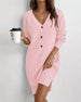 SPECIFICATIONS Style: Casual Material: Acrylic,Spandex,Polyester Dress Type: Sweater Dress Length: Knee Length Neckline: V neck_V Pattern Type: Solid Color Sleeve Type: Raglan sleeve Sleeve Length: Long Sleeve Details: Buttons Fit Type: Regular Season: Fall,Winter Occasion: Daily Package Includes: 1 x Dress SIZE TABLE Size Bust Length ...