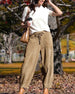 SPECIFICATIONS Style: Casual Material: Cotton Blends Pattern Type: Solid Color Pants Type: Flare Leg Pants Length: Long Waist Type: High Waist Fit Type: Loose Season: Spring,Summer Details: Pocket Occasion: Daily Package Includes: 1 x Pants SIZE TABLE Size Waist Length CM INCH CM INCH S 64 25.20 99 38.98 M 68 26.77 100 39.37 L 7...
