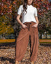 SPECIFICATIONS Style: Casual Material: Cotton Blends Pattern Type: Solid Color Pants Type: Harem/Genie Pants Length: Nine Points Waist Type: Mid Waist Fit Type: Regular Season: Fall,Winter Details: Shirred Occasion: Daily Package Includes: 1 x Pants SIZE TABLE Size Waist Hip Length CM INCH CM INCH CM INCH S 67 26.38 106 41.73 88 3...