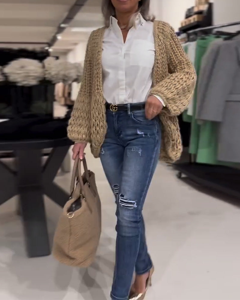 Thick-Knit Long-Sleeved Cardigan