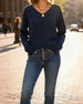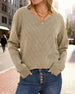 🔥Hot Sale Deals-V-Neck Pointelle Knit Pullover Sweat