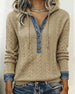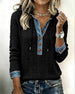 Stylish Denim Patchwork Long-Sleeved Sweatshirt