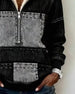 Half-Zip Collar Plaid Pocket Sweatshirt