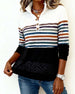 Striped Color-Blocked Stand-Up Collar Sweatshirt
