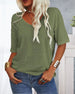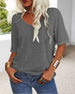 SPECIFICATIONS Top Type: T-shirt Style: Casual Material: Cotton Blends Occasion: Daily Neckline: V neck_V Pattern Type: Solid Color Sleeve Type: Regular sleeve Sleeve Length: Short Sleeve Fit Type: Regular Season: Spring,Summer,Fall Details: Patchwork,Buttons,Lace Package Includes: 1 x T-shirt SIZE TABLE Size Bust Length CM INCH CM INCH...