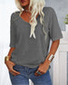 SPECIFICATIONS Top Type: T-shirt Style: Casual Material: Cotton Blends Occasion: Daily Neckline: Round Neck Pattern Type: Print Sleeve Type: Regular sleeve Sleeve Length: 3/4 Sleeve Fit Type: Regular Season: Spring,Summer Details: Irregular Package Includes: 1 x T-shirt SIZE TABLE Size Bust Length CM INCH CM INCH S 97 38.19 68 26...