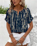 SPECIFICATIONS Top Type: T-shirt Style: Casual Material: Cotton Blends Occasion: Daily Neckline: Round Neck Pattern Type: Print Sleeve Type: Ruffle Sleeve Sleeve Length: Short Sleeve Fit Type: Regular Season: Spring,Summer Details: Patchwork,Hollow Out Package Includes: 1 x T-shirt SIZE TABLE Size Bust Shoulder Width Length C...