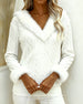 SPECIFICATIONS Top Type: Tops Style: Casual Material: Cotton Blends,Plush Occasion: Daily Neckline: V neck_V Sleeve Type: Regular sleeve Sleeve Length: Long Sleeve Fit Type: Regular Season: Fall,Winter Details: Patchwork Package Includes: 1 x Top SIZE TABLE Size Bust Length CM INCH CM INCH S 92 36.22 65 25.59 M 96 37.8 66.5 26.18 ...