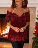 Ruffled V-Neck Long-Sleeved Velvet Top