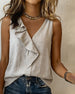 Ruffled Cotton Linen Sleeveless Tank Top