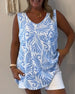 Loose-Fitting Plant-Print Tank Tops