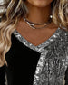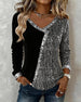 SPECIFICATIONS Top Type: Tops Style: Casual Material: Cotton Blends Occasion: Daily Neckline: V neck_V Pattern Type: Sequin,Color Block Sleeve Type: Regular sleeve Sleeve Length: Long Sleeve Fit Type: Regular Season: Fall,Winter Package Includes: 1 x Top SIZE TABLE Size Bust Length CM INCH CM INCH S 97 38.19 65 25.59 M 101 39....