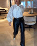 Button-Down V-Neck Puff Sleeve Blouse